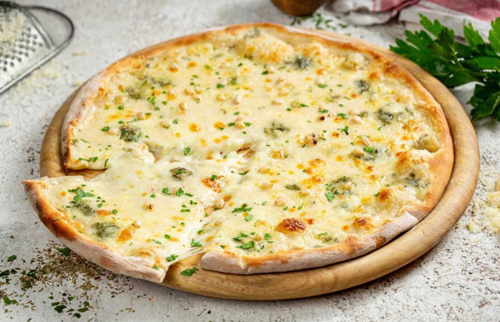 моцарелла, пармезан, чеддер, дорблю, белый соус (40 см)
